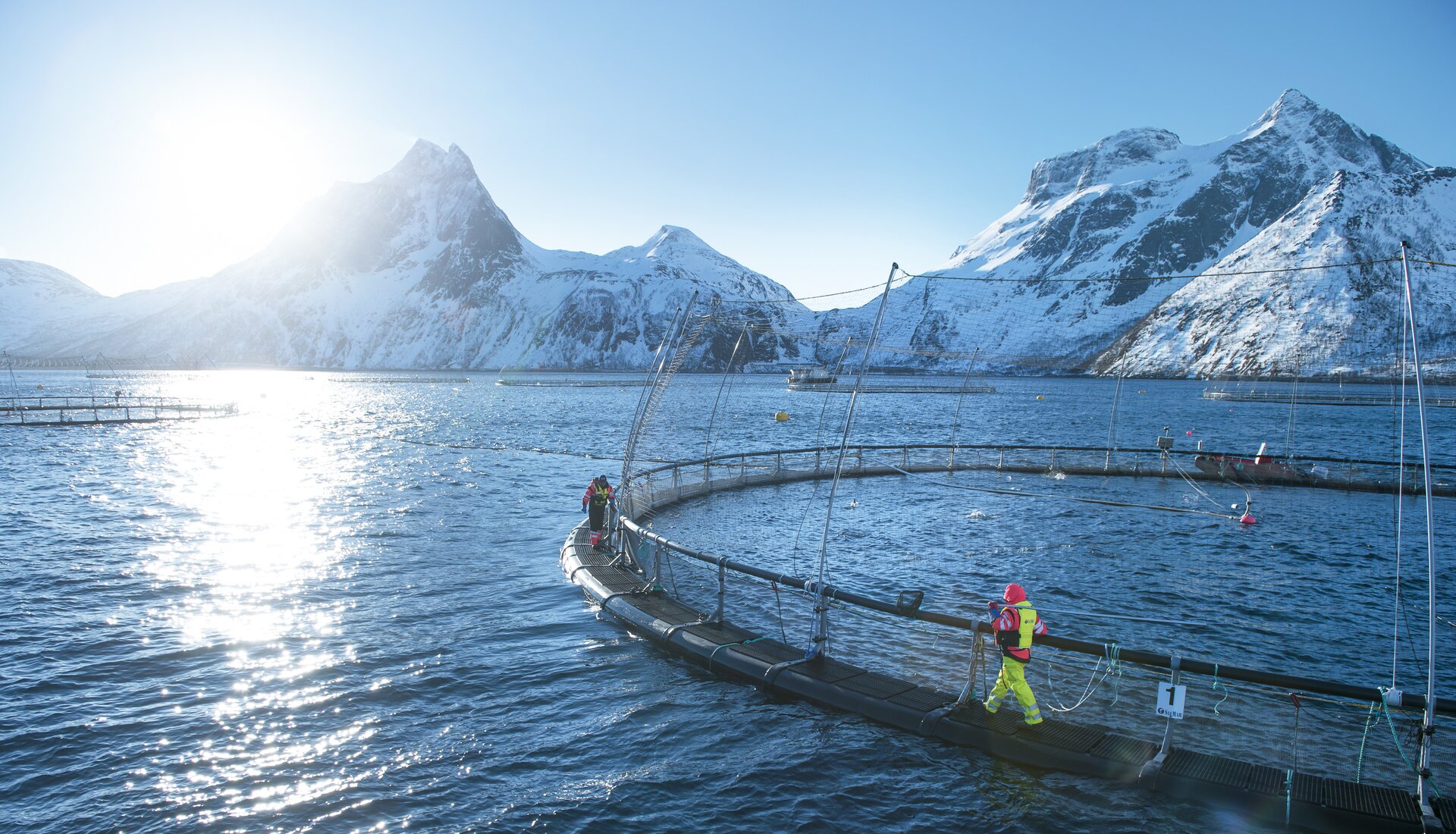 يجب أن تكون المزارع في عرض البحر، في المياه الباردة والصافية لمضايقنا، بعيدة بما يكفي عن مناطق الحركة البحرية. يجب أن يكون للأسماك مساحة واسعة للسباحة والنمو في بيئة نظيفة. نضمن وجود 97.5% من الماء على الأقل لكل 2.5% من سمك سلمون. بمجرد الحصول على الموافقة، يجب أن يوافق موقع الإنتاج على أن يكون تحت المراقبة الصارمة والدورية.